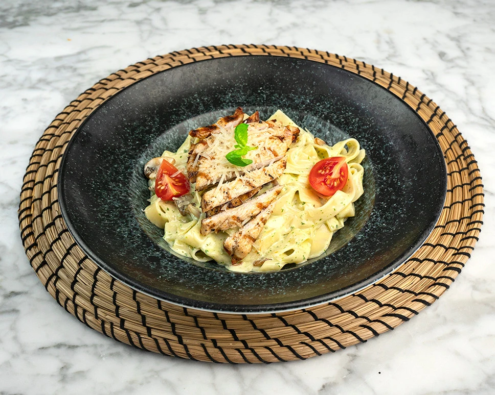 Izgara Tavuk göğsü, krema, mantar ve parmesan peyniri ile
